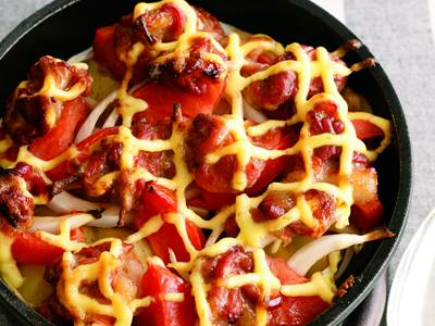 豚トマポテトのオーブン焼き(撮影: 原 ヒデトシ)