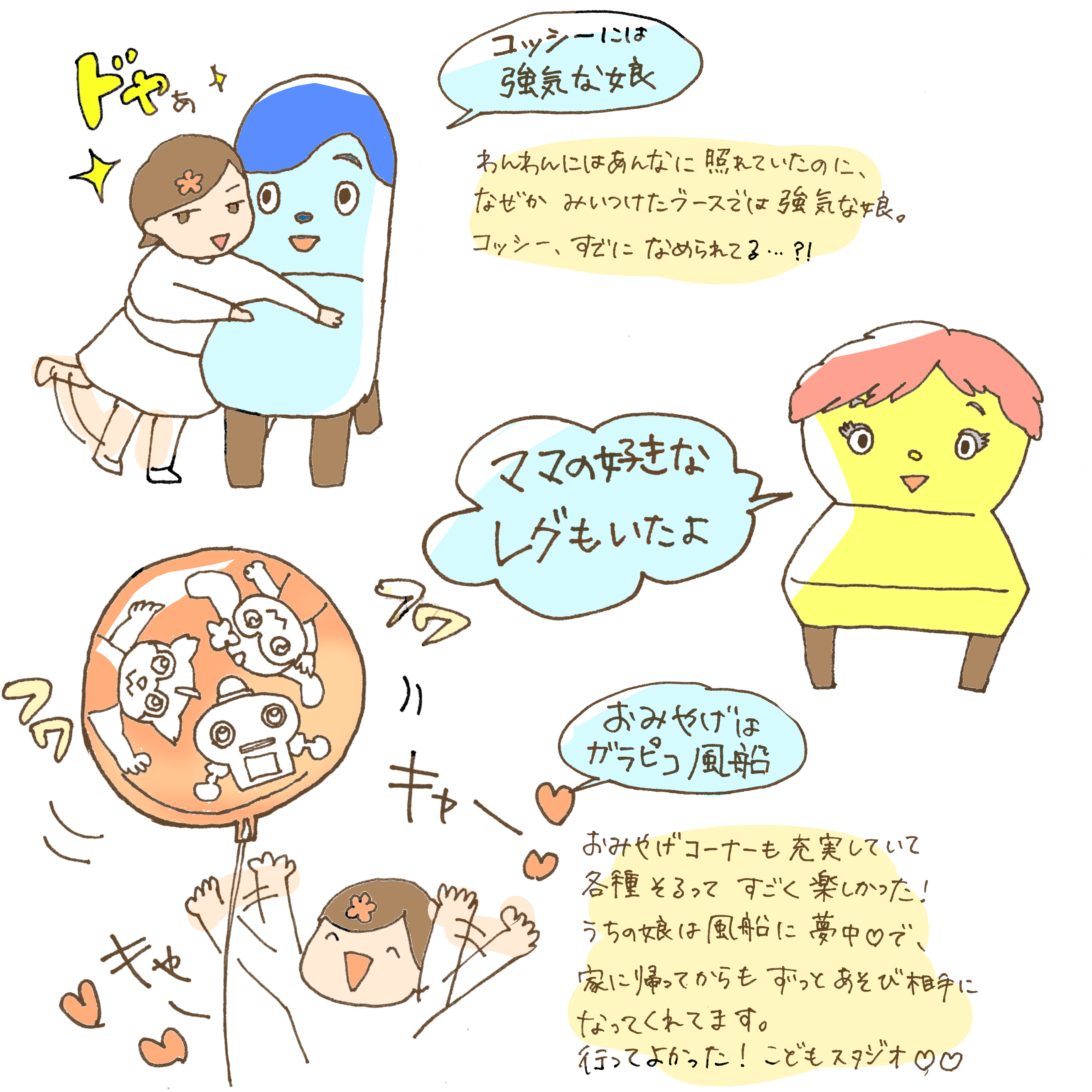 1歳の女の子のママ・オキさんが「こどもスタジオ」を体験したお子さんの様子をイラストに描いてくれました。