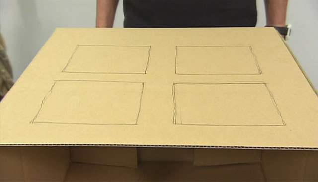 (4)(3)で作った的を元のダンボールにはめ込む。