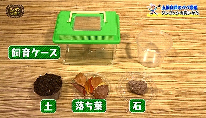 飼うために必要なものは、飼育ケース、土、落ち葉、石などです。