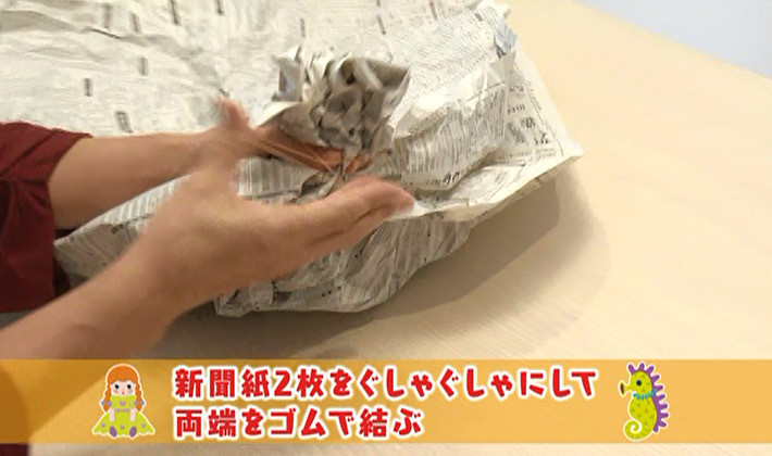新聞紙は一度ぐしゃぐしゃにすることで、破れにくくなります。