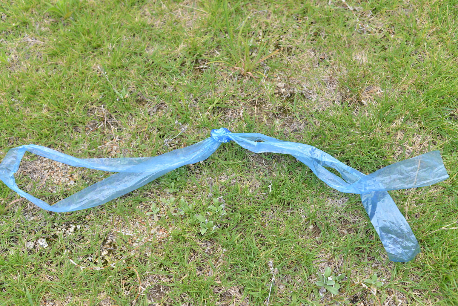 カラフルな紙をやぶって、レジ袋の中に入れます。ある程度入れたら、袋の中に空気を入れ結びます。空気がパンパンに入っていれば、撮影アイテムの完成です。