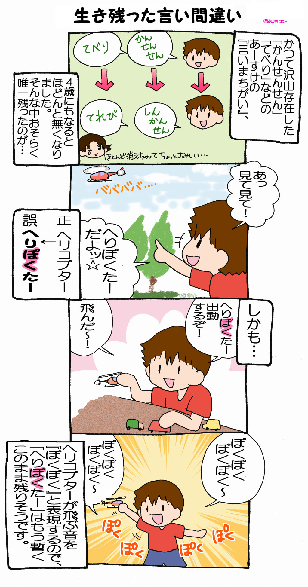 たくさんあったかわいい言い間違いも、4歳になってほとんど消えてしまったのですが。