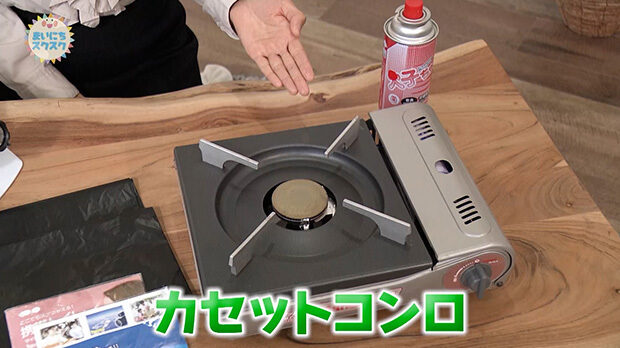 ガスが止まったときに役立つのが、どこでも調理ができる卓上のカセットコンロです。スペアのガスボンベを多めに用意しておくと安心です。