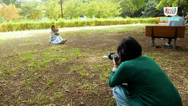 撮影のポイントは2つ。少し離れたところで葉っぱに光があたってきれいな緑が出ているところ、子どもは背が低いので低い位置に明るい緑があることです。