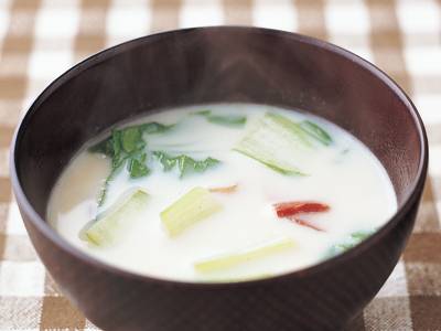 まるでクリームスープのような見た目にびっくり!炒めたベーコンと牛乳でコクをプラスした、洋風のみそ汁です。ミルクの甘さが加わって、お子さんにも食べやすそうですね。