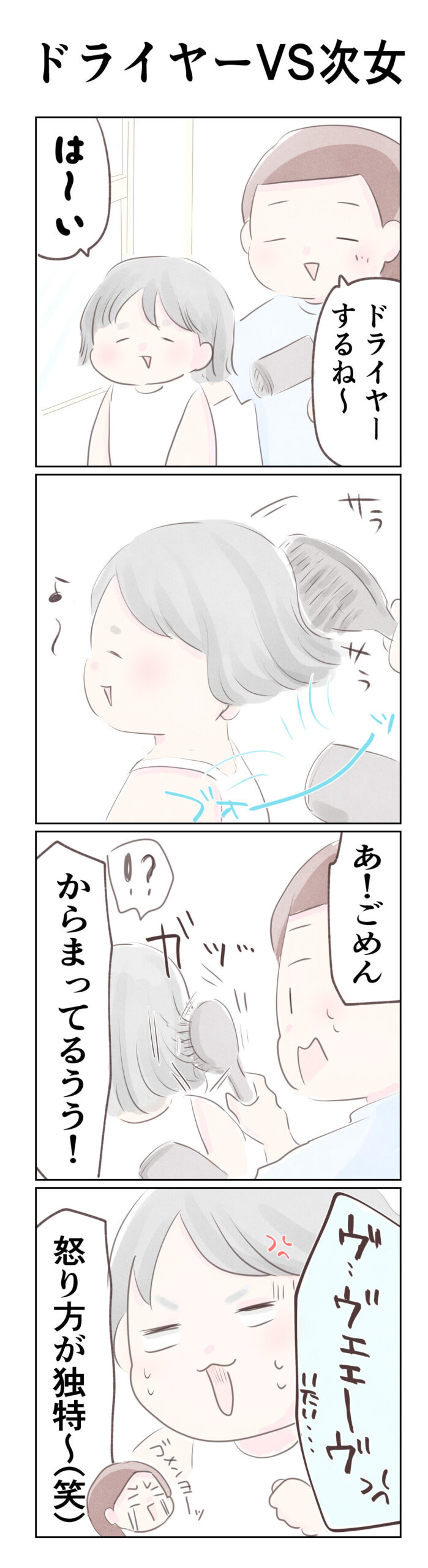 【連載☆子育てあるあるマンガ】「ドライヤーVS次女」by ようみんさん