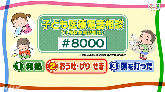 子どもが発熱、おう吐・げり、頭を打った。休日・夜間など、対処法や受診に迷ったとき相談できるのが「子ども医療電話相談(小児救急電話相談)#8000※」です。相談の中でも、特に多いものについて、#8000にも関わっている小児科医の福井聖子さんに聞きました。