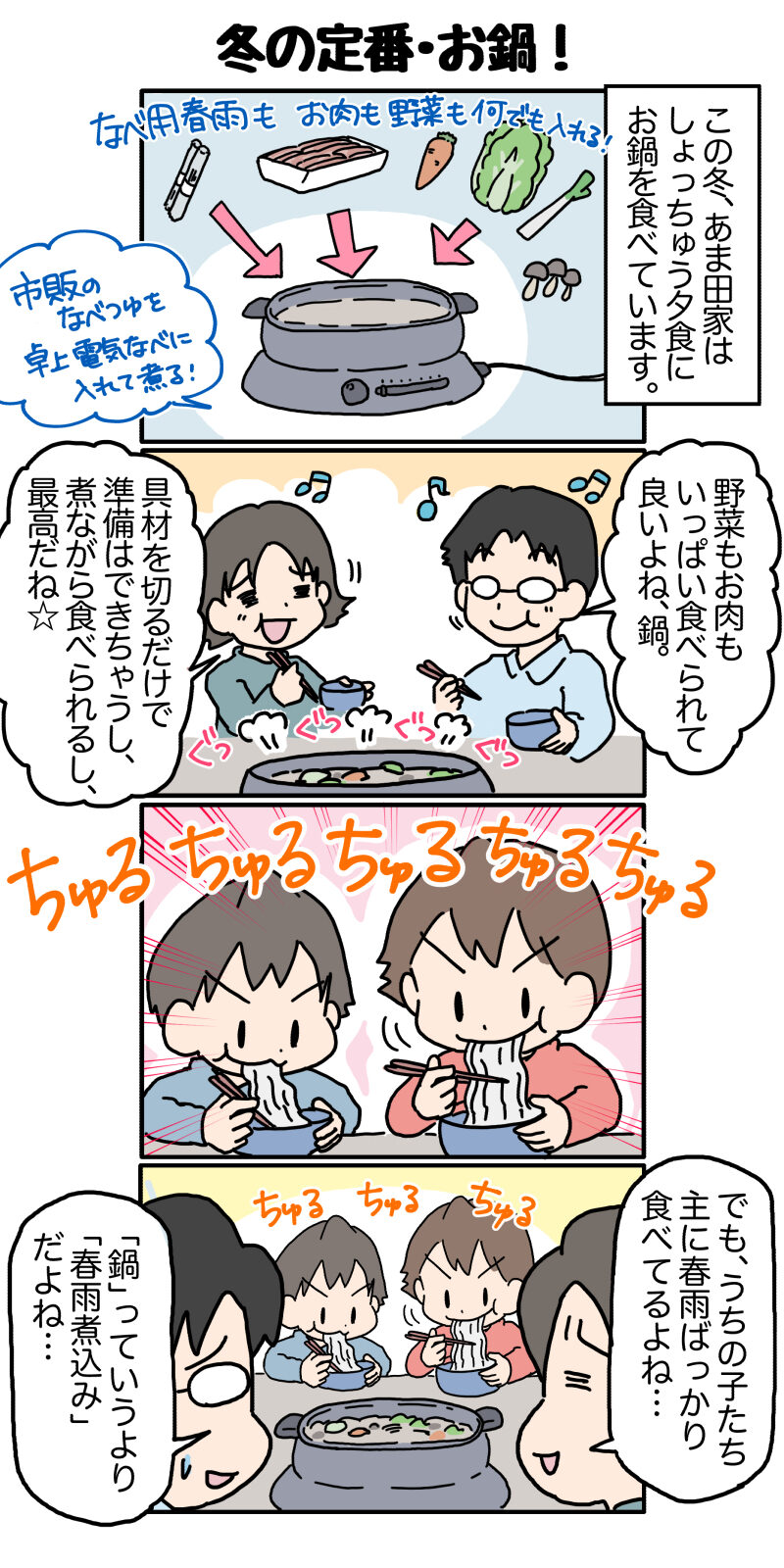 【連載☆子育てあるあるマンガ】「冬の定番・お鍋!」by あま田こにーさん
