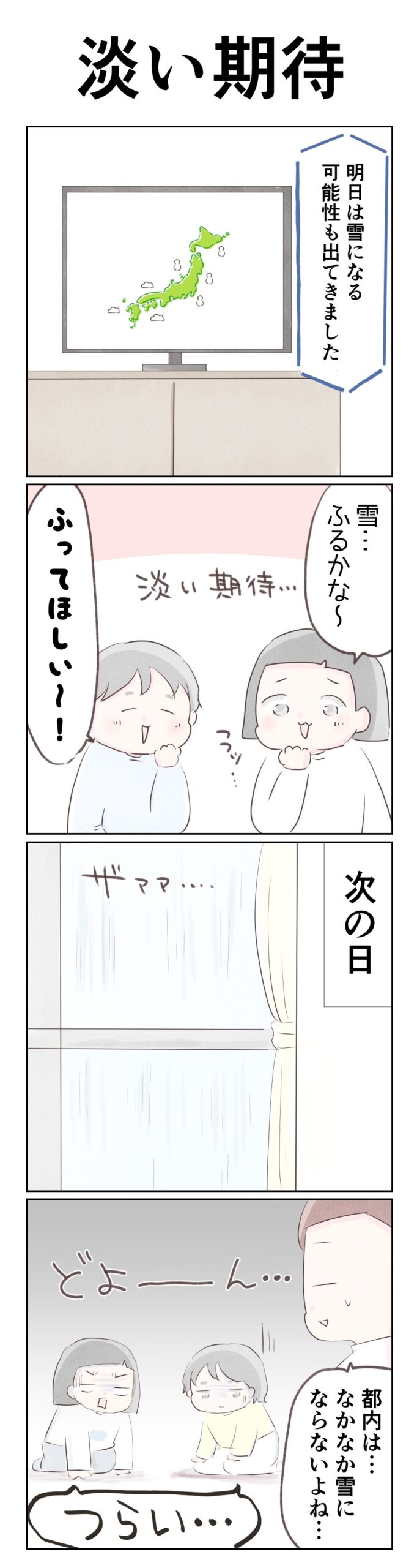 明日は雪!?? 雪の少ない東京では子どもたちは大喜び ウキウキで寝るけど次の日は雨が多く… 姉妹のテンションも低めです(笑)