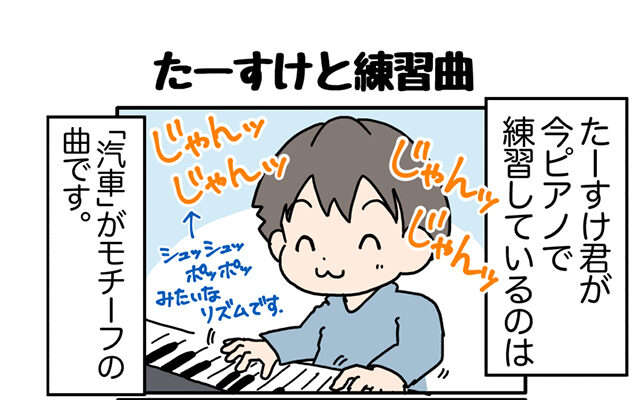 シュッシュ、ポッポ、のリズムを弾きながら