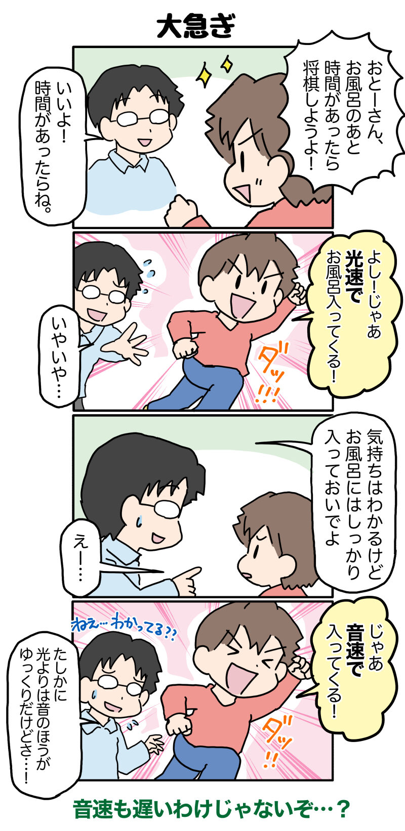 光速と音速、知っているんだ…へぇ…!って、 そっちにびっくりした私です。 結局この日あーすけ君は お風呂からさっさと出てきちゃいました!笑