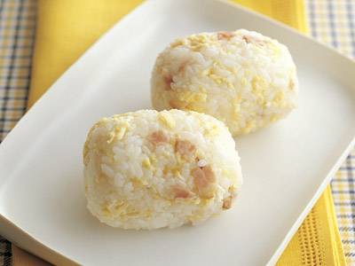 ベーコンと炒り卵の混ぜご飯おにぎり(撮影: 榎本 修)