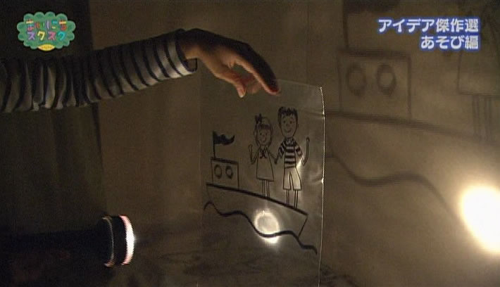 ★イラストが一番きれいに映るように懐中電灯をあてる角度・距離を工夫する