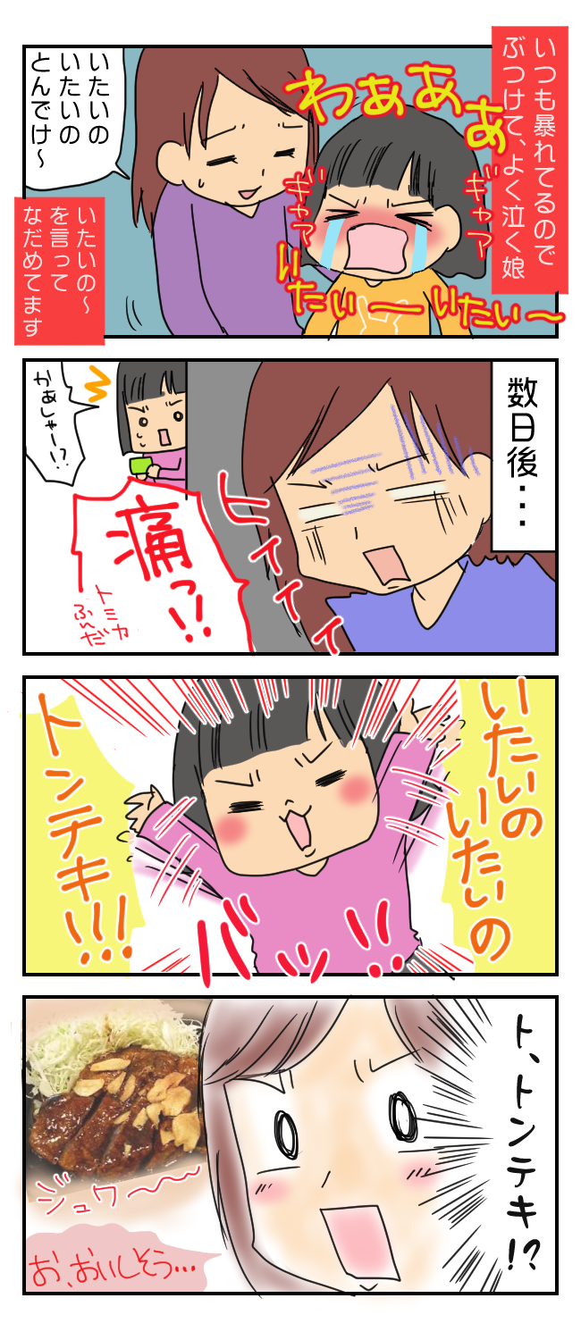 いたいのいたいの、とんでけ~が、「トンテキ」になってました(笑)