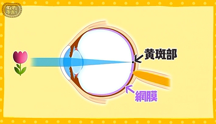 ものを見るとき、絞りとレンズを調整して、網膜の中心にある黄斑部(おうはんぶ)という部分にピントを合わせます。
