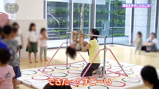 体操教室でも、「すごいね! なんでもできるね! 頑張れ! かっこいいよ」のように声をかけています。できたときは、全力でほめてあげることを大事にしています。コロナ禍で、オンラインで教えることが増えましたが、「ほめる」ことは変わりません。